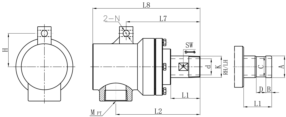 Model K M d L1 L2 L7 L8 N H SW 法蘭式外管尺寸對照表