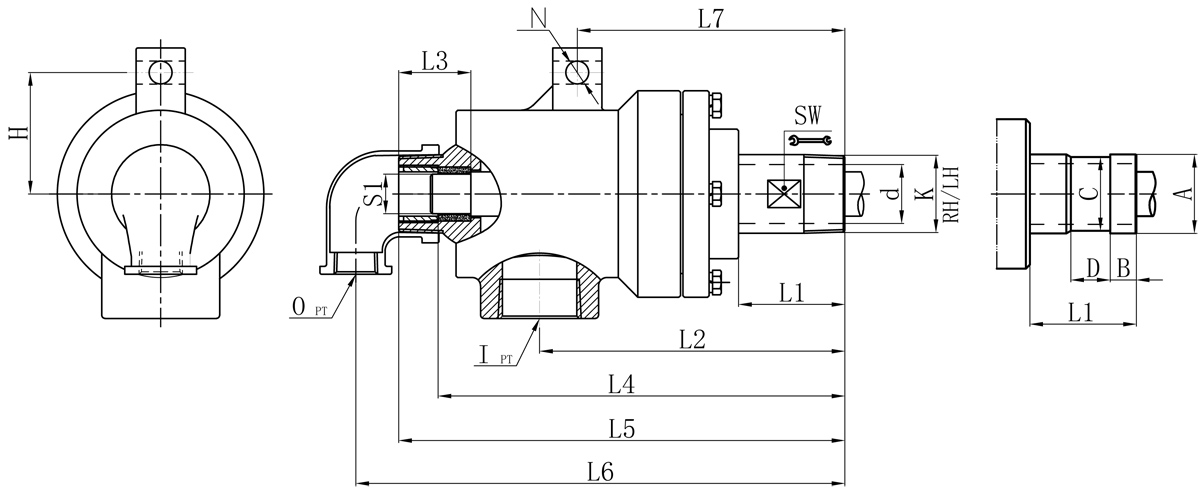 | Model | K | I | O | S1 | d | L1 | L2 | L3 | L4 | L5 | L6 | L7 | L9 | N | H | SW | 法蘭式外管尺寸對(duì)照表 | |||