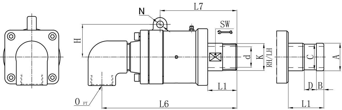 | Model | K | O | d | L1 | L6 | L7 | N | H | SW | 法蘭式外管尺寸對(duì)照表 | |||