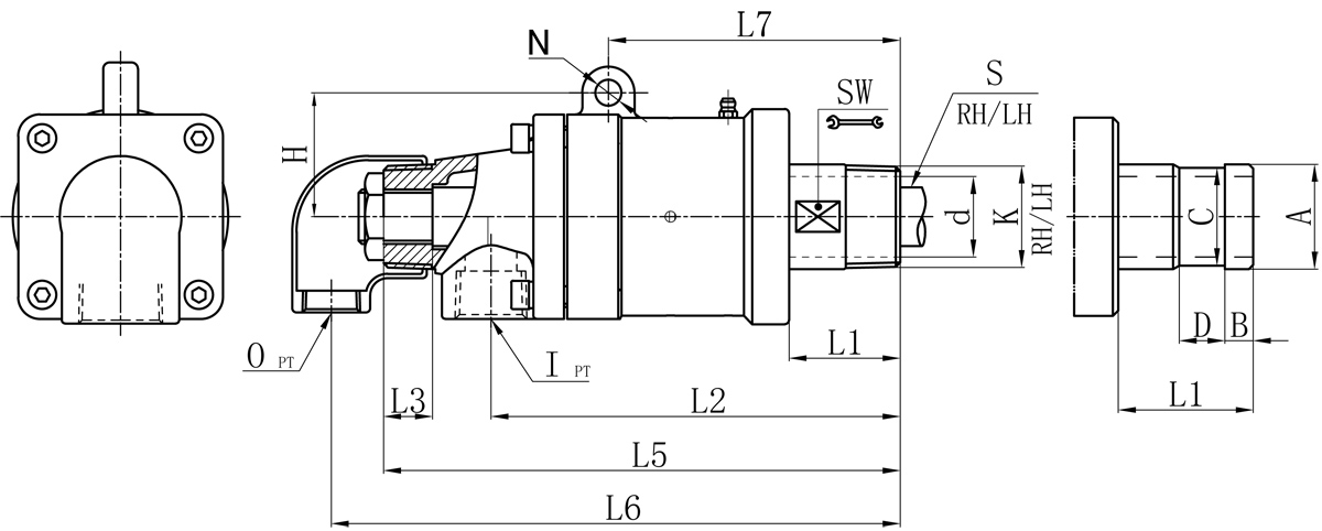 Model K I O S d L1 L2 L3 L5 L6 L7 N H SW 法蘭式外管尺寸對照表