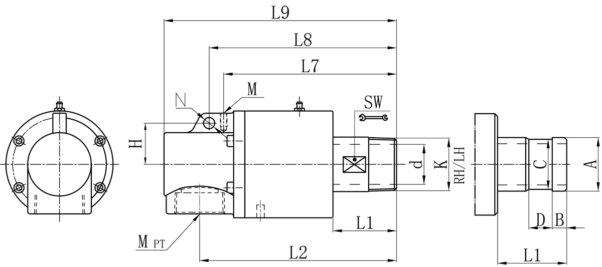 Model K M d L1 L2 L7 L8 L9 M N H SW 法蘭式外管尺寸對照表