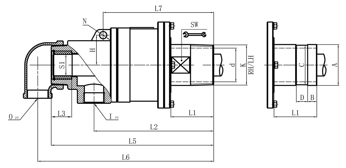 | Model | K | M | I | O | S | S1 | D1 | L1 | L2 | L3 | L5 | L6 | L7 | L8 | N | SW | H | 法蘭式外管尺寸對照表 | |||